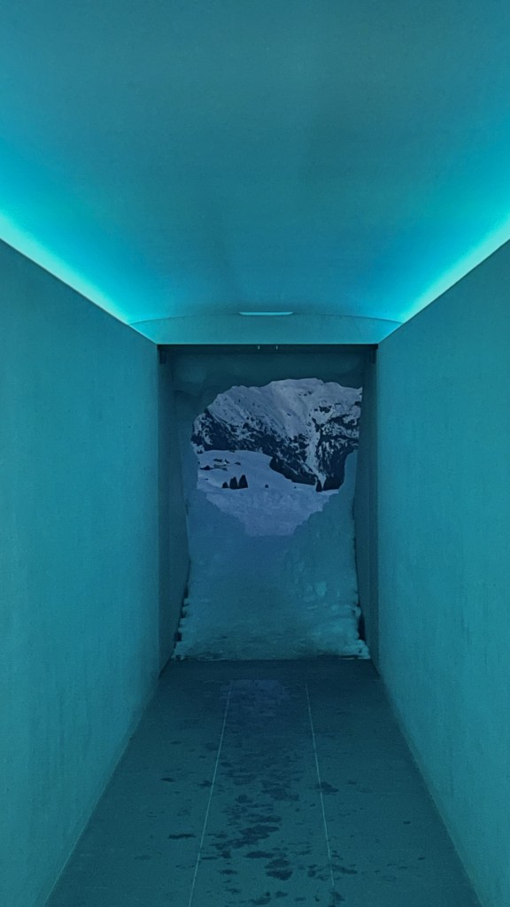 What makes this Skyspace stand out is its integration with the alpine environment. It is built into a hillside, at an elevation of 1,800 meters, the installation offers a perfect interplay of art and nature. Visitors enter through a tunnel carved into the mountain, which leads them to the central chamber. There is a circular bench all the way around the room designed for people to sit and look up.